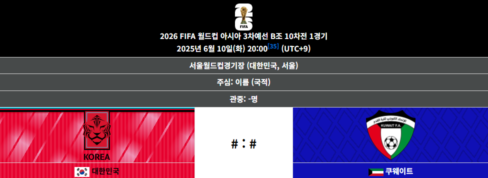 - ✅ 경기명: 2026 FIFA 월드컵 아시아 3차 예선