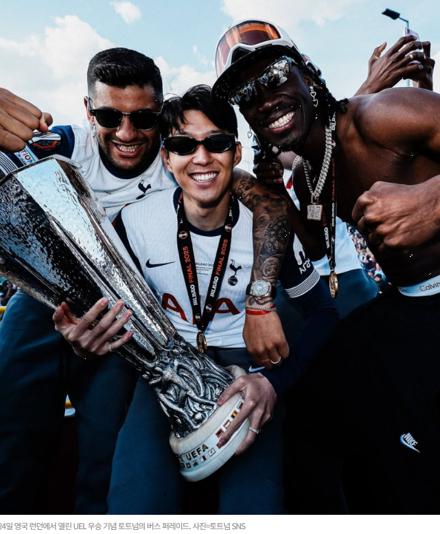 우승 다음 날 런던 북부에서 진행된 UEL 우승 기념 퍼레이드에서 손흥민은 팬들과 진심 어린 소통을 나누며 또 한 번 모두를 감동시켰습니다. “이 순간을 위해 꿈꿔왔다. 이 팀이 정말 자랑스럽다”며 기쁨을 감추지 못했고, 팬들은 열광적인 환호로 그에게 보답했습니다.