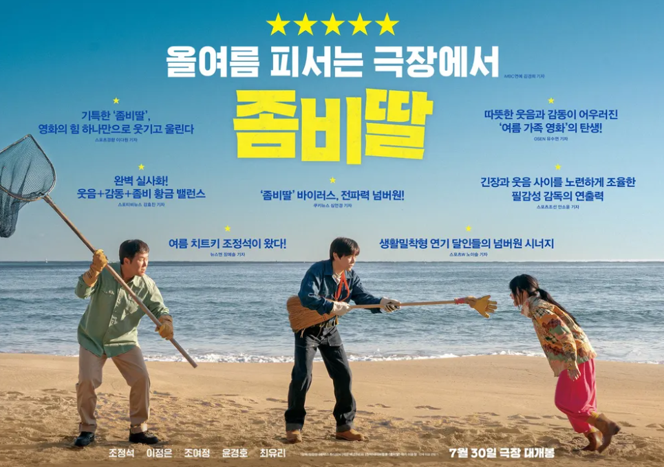 - 여름바다의 따뜻한 햇살과 함께, 상상할 수 없는 상황에서도 아빠의 사랑을 통해 본질적인 가치를 되새길 수 있는 '좀비딸'은 조정석의 뛰어난 연기력 덕분에 더욱 돋보인다.