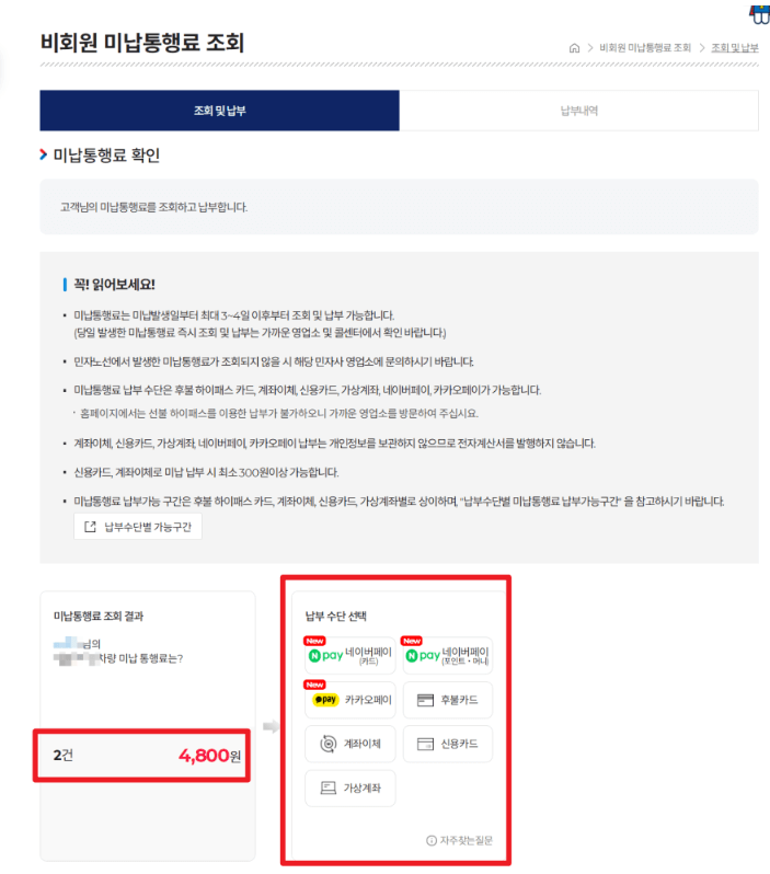 하이패스미납요금조회 3분 완성