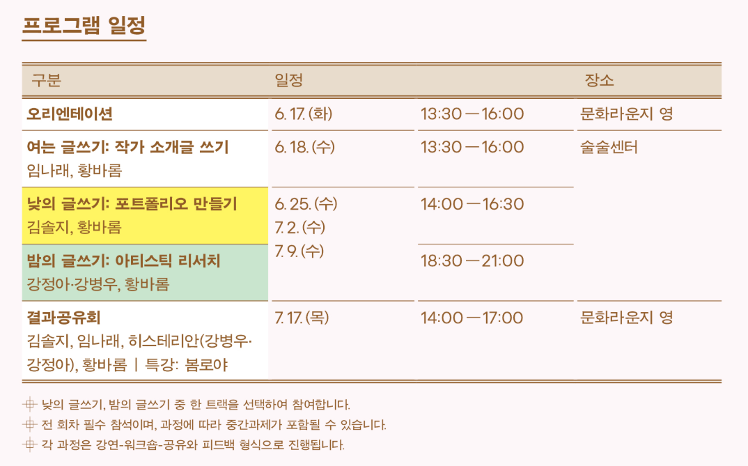 ※ 2025년 6월 5일 기준, '밤의 글쓰기' 트랙은 조기 마감되었습니다.